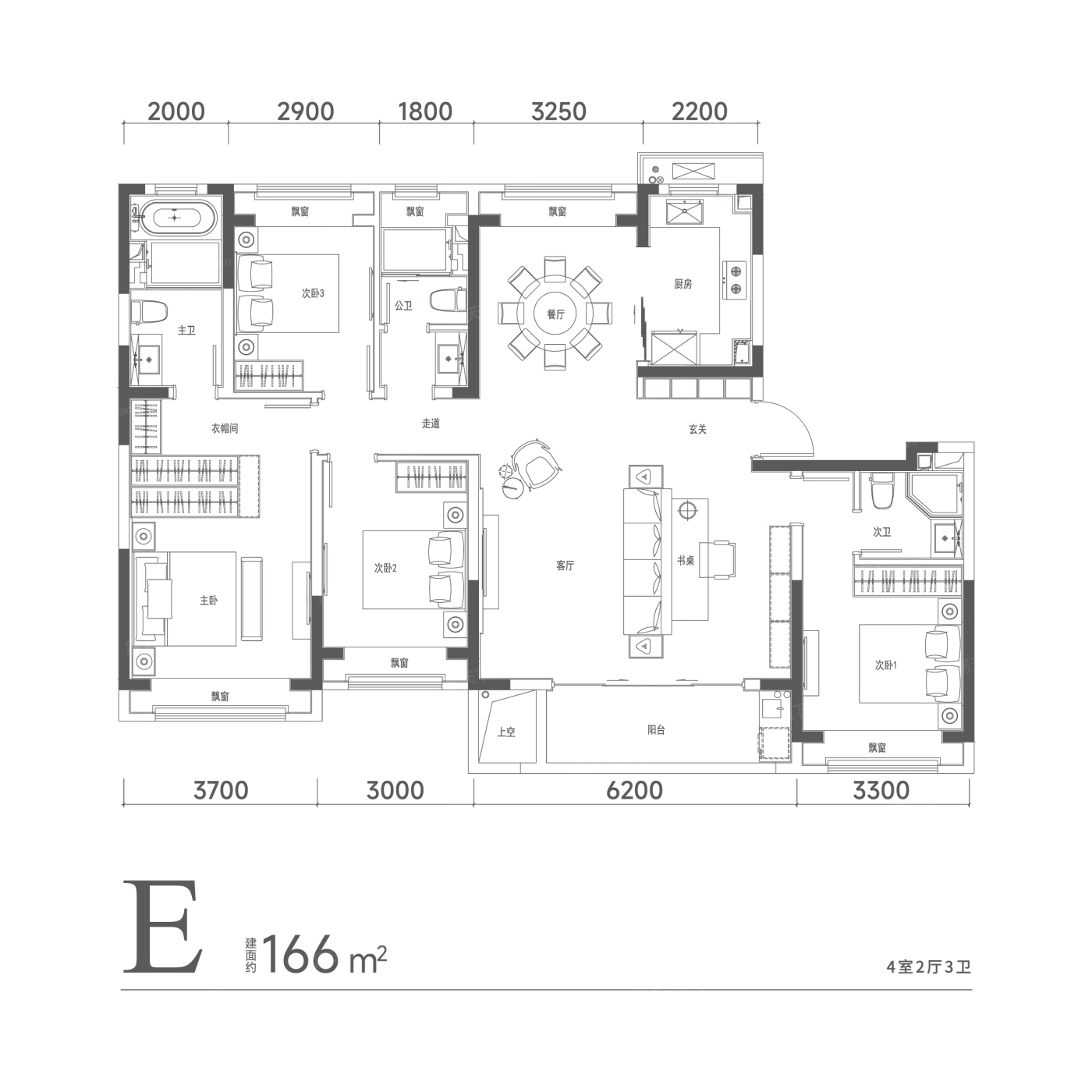 4室2厅1厨3卫 建面166.00㎡