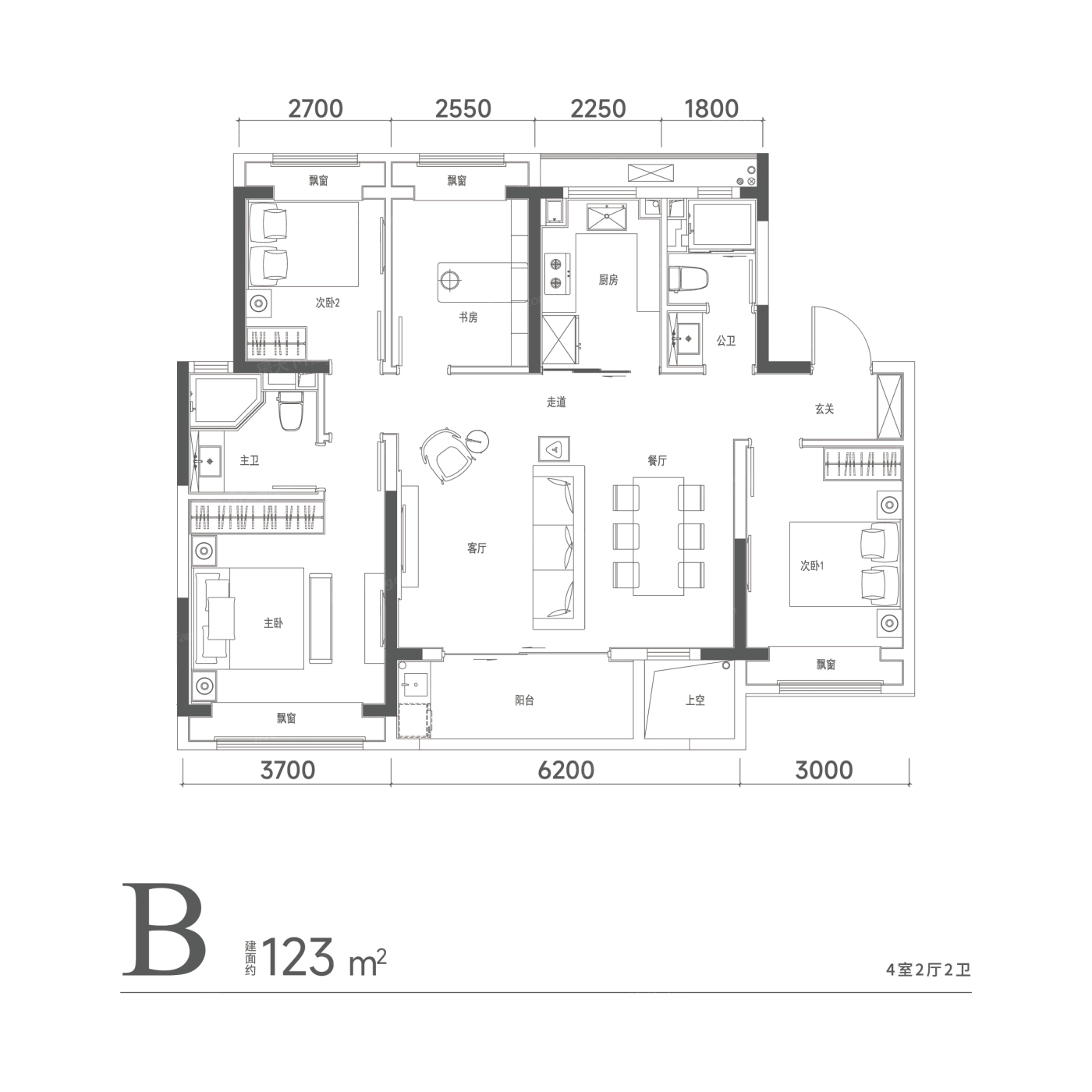 4室2厅1厨2卫 建面123.00㎡