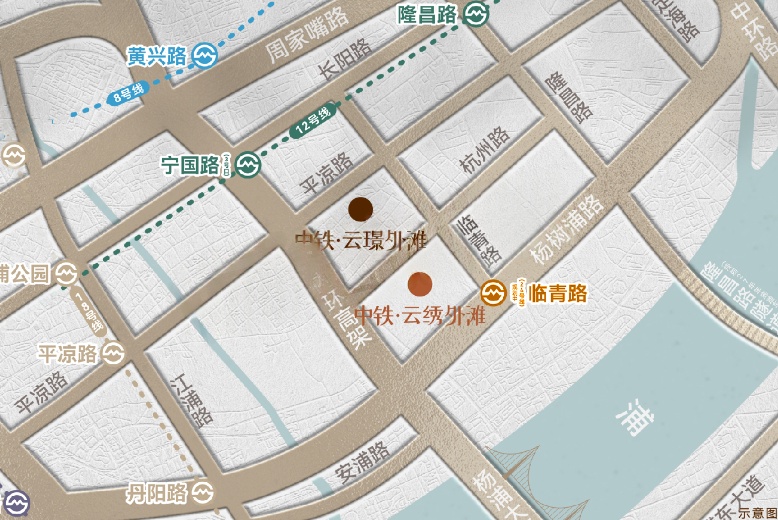项目周边3公里范围内轨道交通布局完善,共设有17座地铁站点,包括宁国路站、丹阳路站、平凉路站以及隆昌路站等重要节点。其中,宁国路站作为距离项目最近的站点,进一步凸显了区域交通的便捷性。此外,项目直线1公里范围内汇聚19个公交站点,杨浦大桥站距离项目仅约152米,全面覆盖的公共交通网络为居民的日常通勤与出行提供了高效保障。